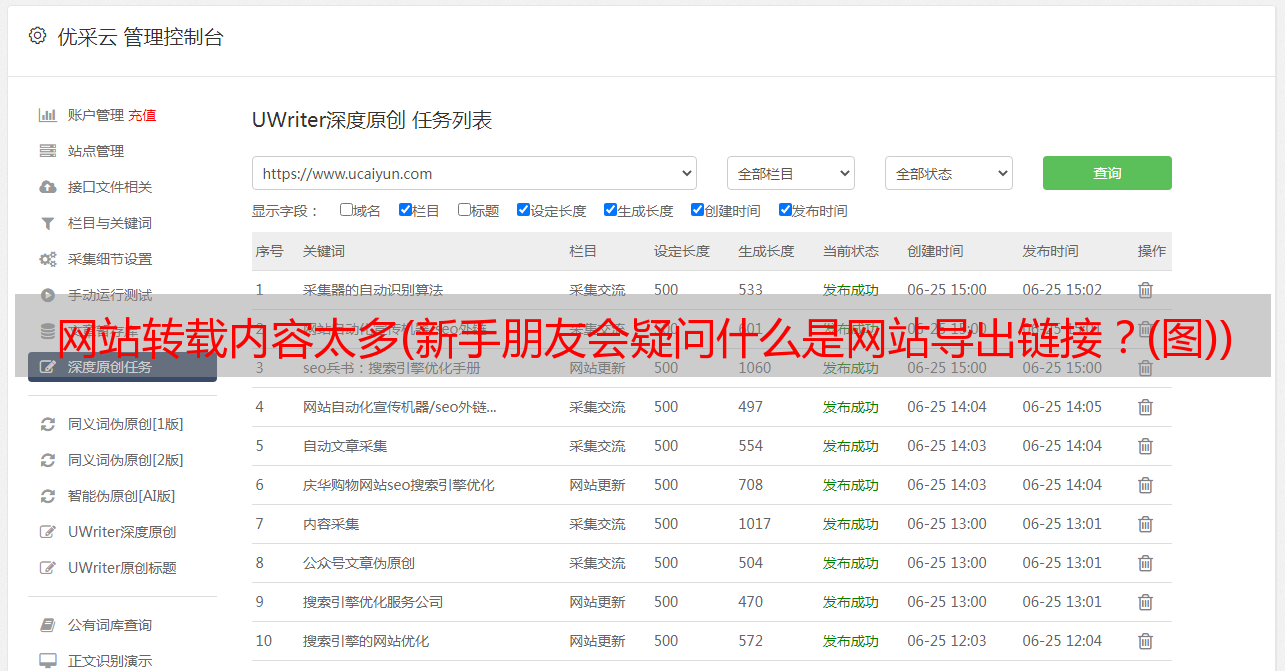 优采云 发布时间: 2022-01-06 20:17网站转载内容太多(新手朋友会疑问什么是网站导出链接?(图))