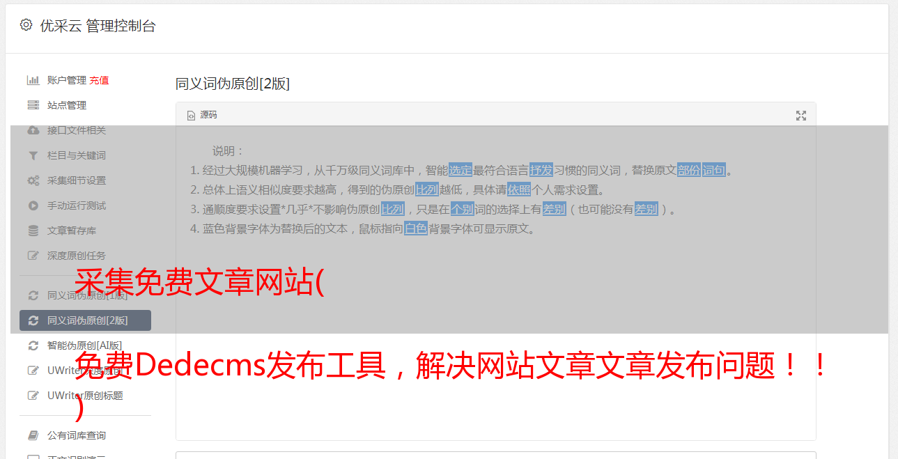 伪原创工具:免费无缝对接采集,直接采集到本地,支持本地批量伪原创+支持网站API接口