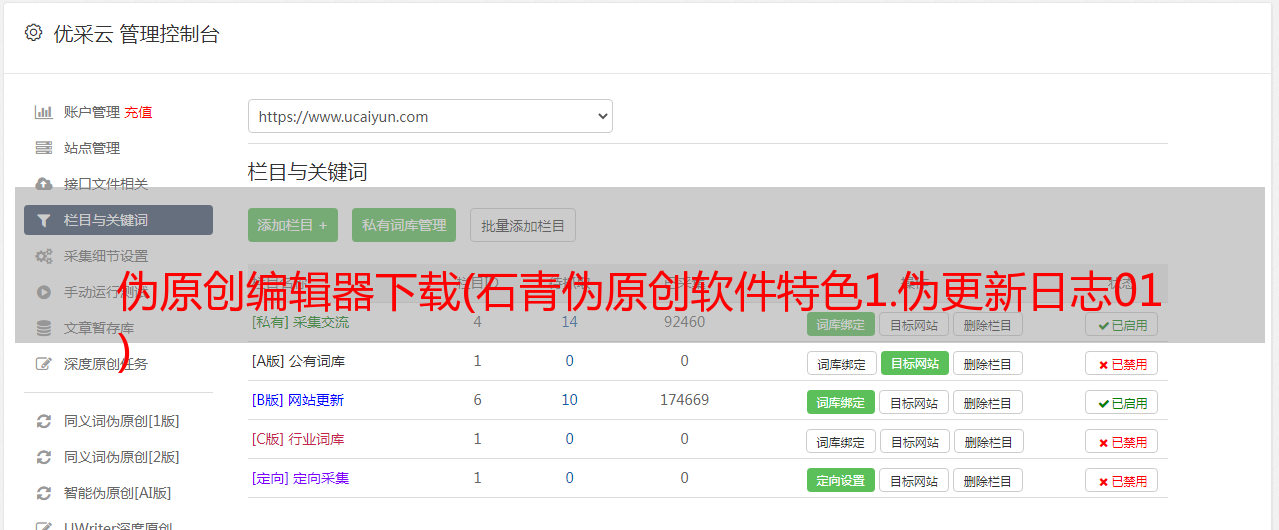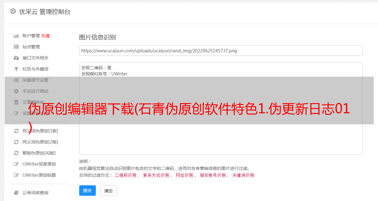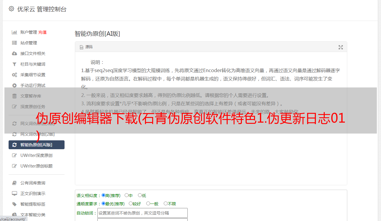 优采云 发布时间: 2022-01-07 01:12伪原创编辑器下载(石青伪原创软件特色1.伪更新日志01