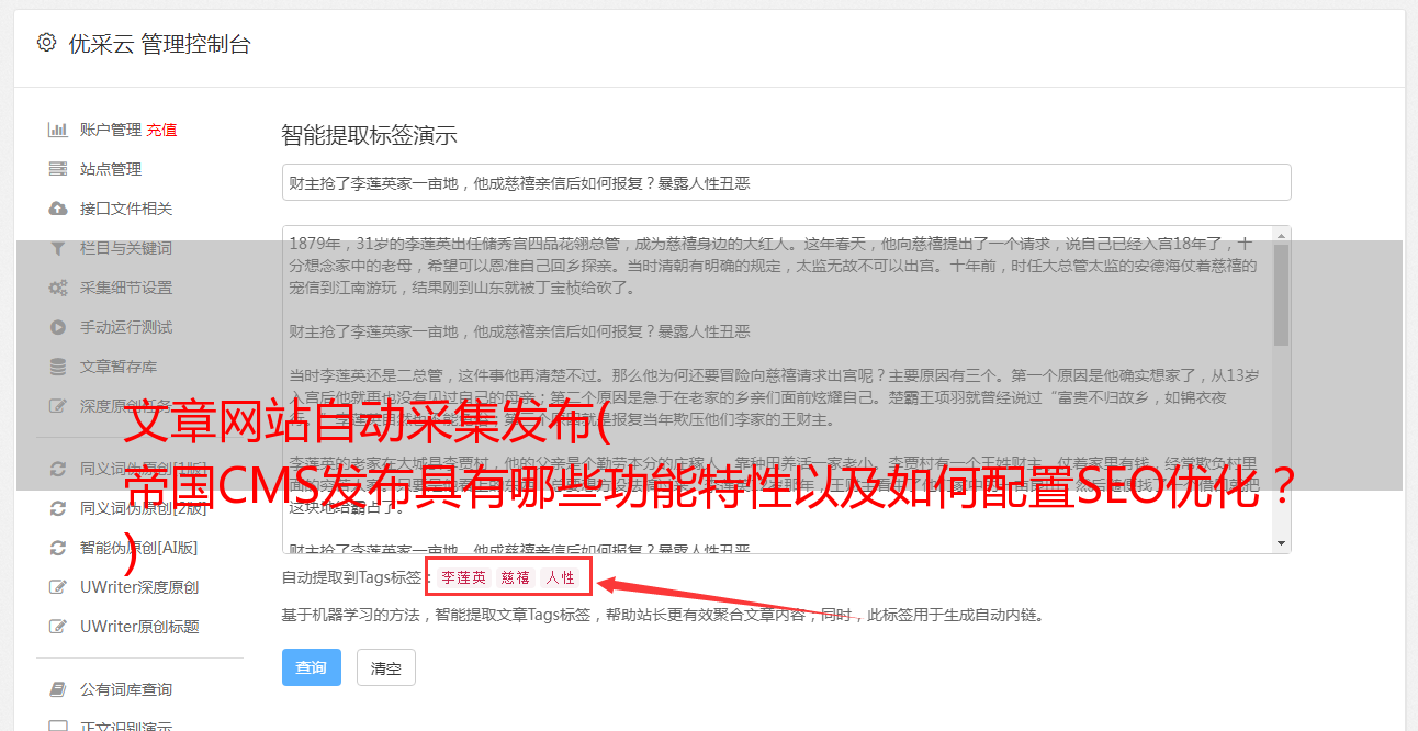 文章网站自动采集发布( 帝国CMS发布具有哪些功能特性以及如何配置SEO优化? )