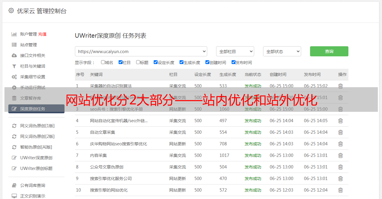 优采云 发布时间: 2021-04-23 22:31网站优化分2大部分——站内优化和站外优化