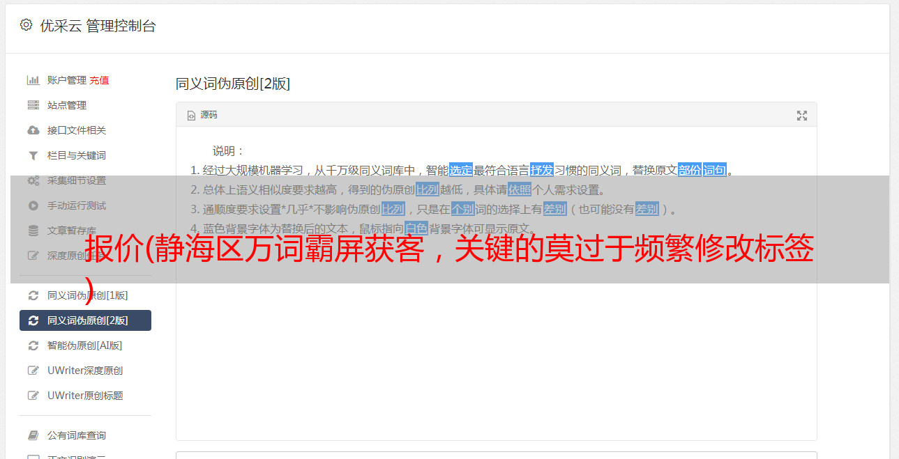优采云 发布时间: 2022-01-08 07:13报价(静海区万词霸屏获客,关键的莫过于频繁修改标签