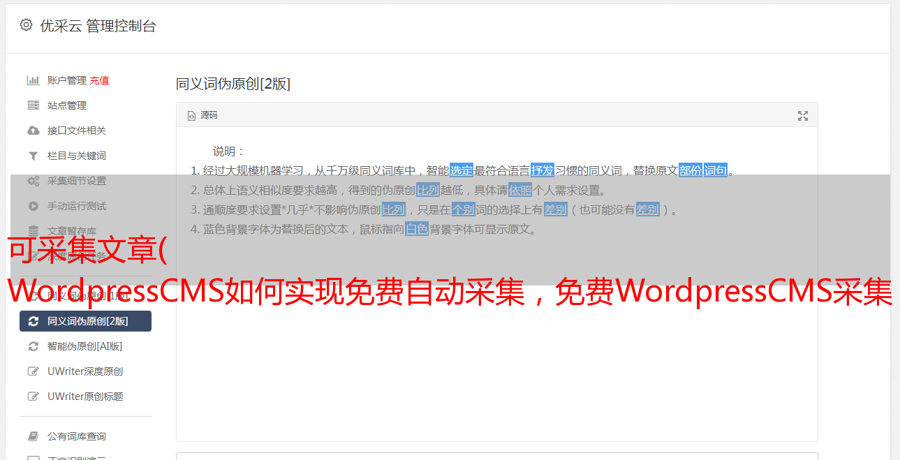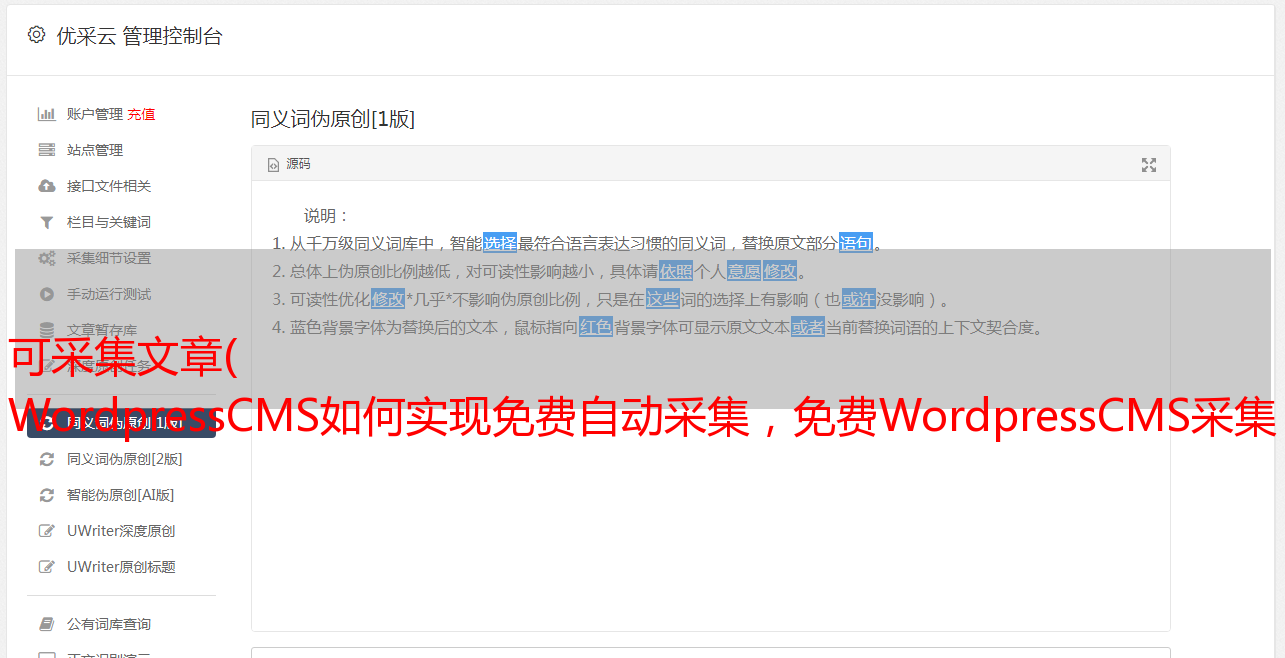 1.可以在文章发布时自动伪原创发布(伪原创主要针对搜索引擎,适合大流量采集类网站, 对于 伪原创 @收录很有帮助)