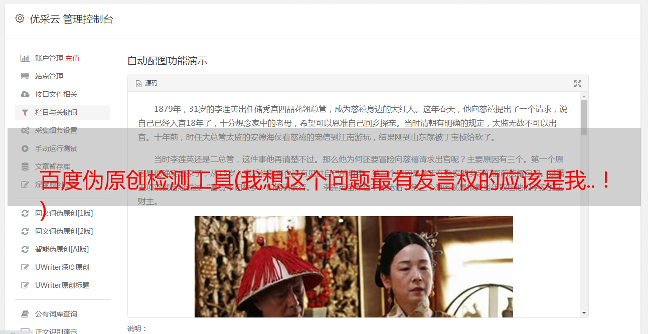 优采云 发布时间: 2022-01-08 11:09百度伪原创检测工具(我想这个问题最有发言权的应该是我..!