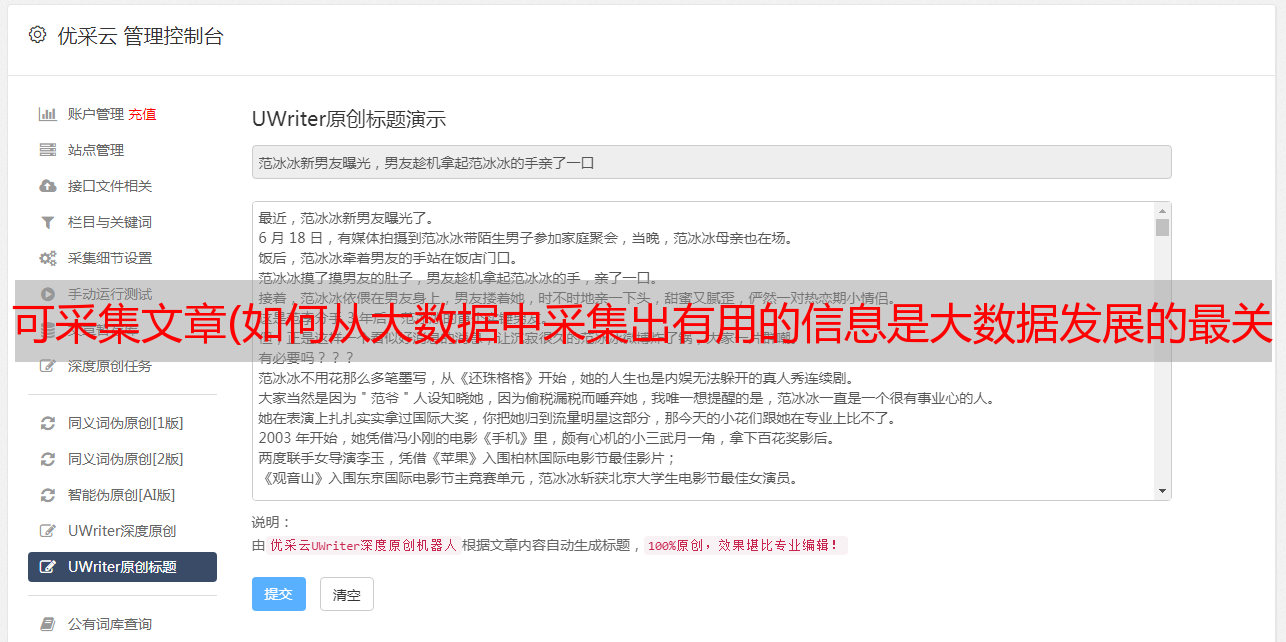 可采集文章(如何从大数据中采集出有用的信息是大数据发展的最关键因素 )