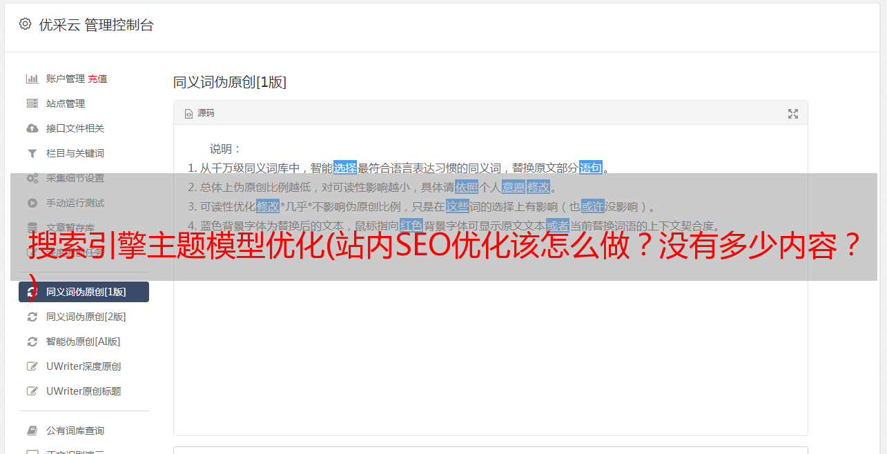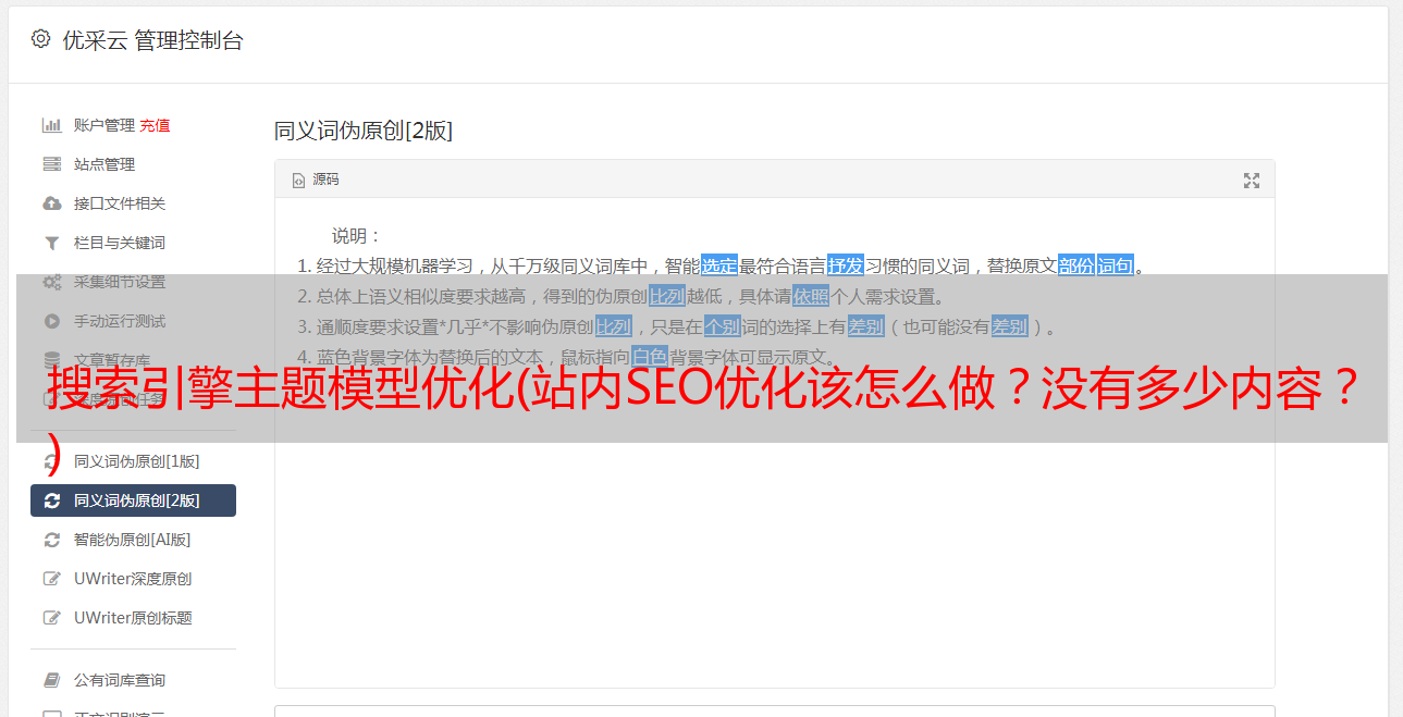 优采云 发布时间: 2022-01-08 20:21搜索引擎主题模型优化(站内SEO优化该怎么做?没有多少内容?