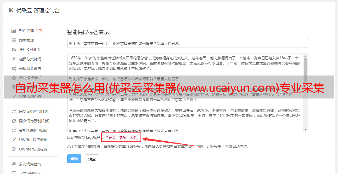 1.打开软件输入关键词即可实现全自动采集,多站点采集发布,采集文章自动过滤@>,与行业无关文章,保证内容100%相关性,全自动批量挂机采集,无缝对接各大cms出版商,后采集 自动发布推送到搜索引擎!