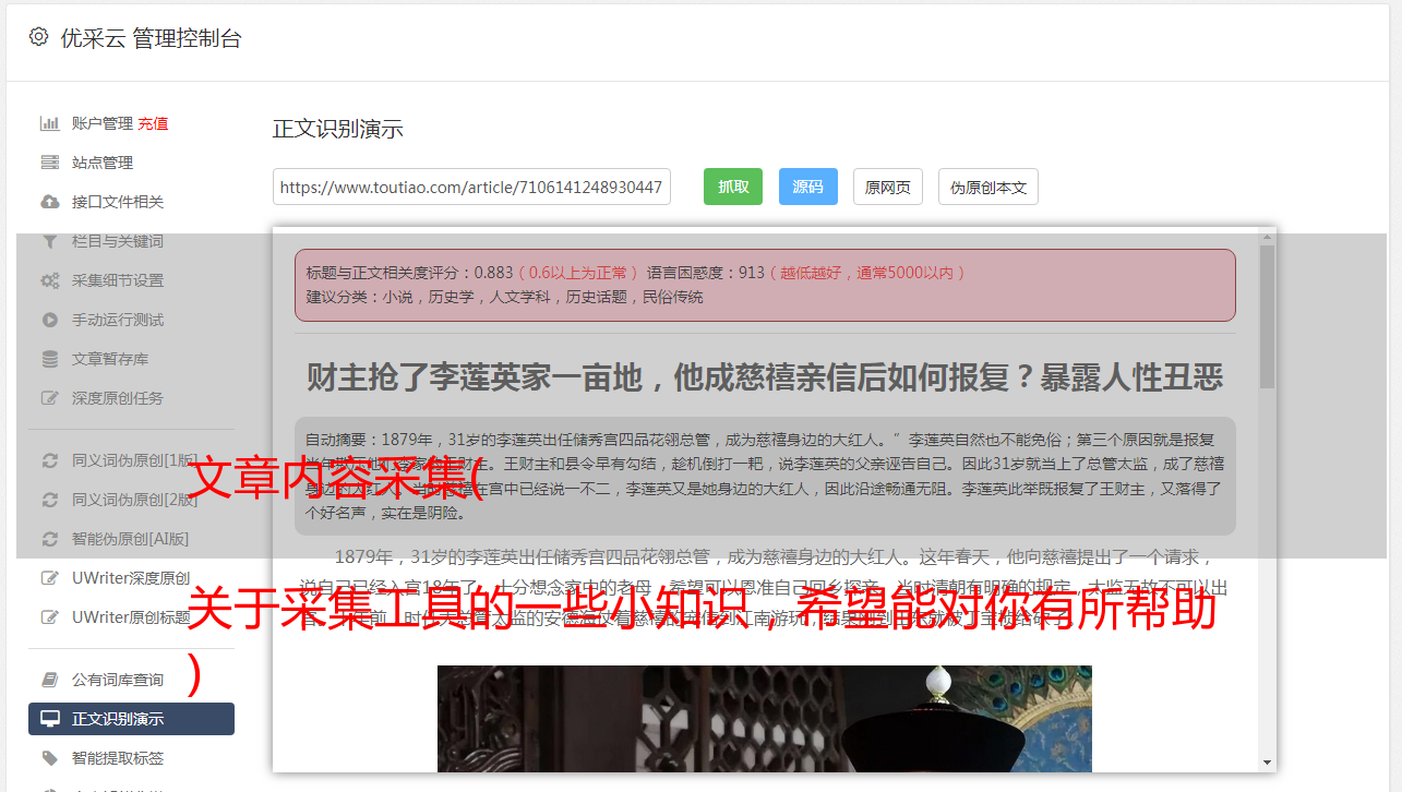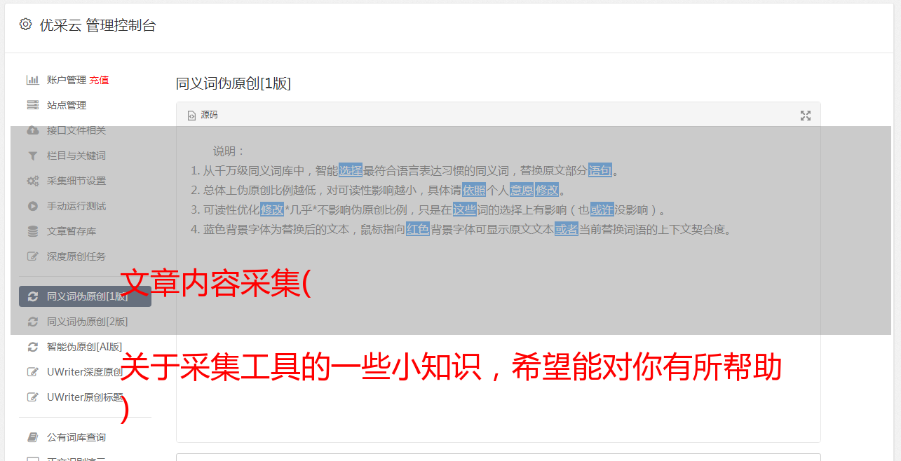 第四,我们如何处理来自 采集 的内容?通过伪原创提高采集文章SEO收录的率,我们的采集肯定不会达到100%原创。使用伪原创的目的是想办法绕过搜索引擎或新媒体的收录检查算法。让内容收录更快,增加文章流量。