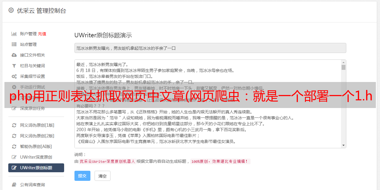 php用正则表达抓取网页中文章(网页爬虫:就是一个部署一个1.html网页的思路和思路)