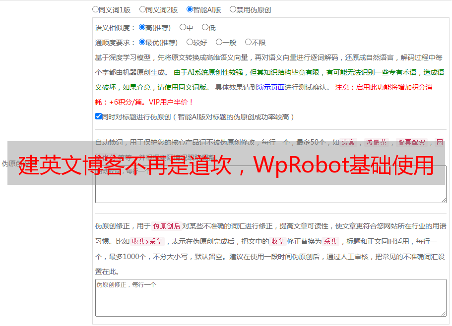 这些功能绝对不是,但是我还没有想到。您会发现它功能强大且易于使用。用它建立一个英语博客不再是障碍。以下是WpRobot的基本用法教程。