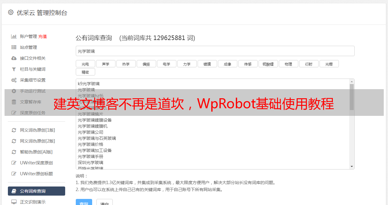 优采云 发布时间: 2021-04-24 04:21建英文博客不再是道坎,WpRobot基础使用教程