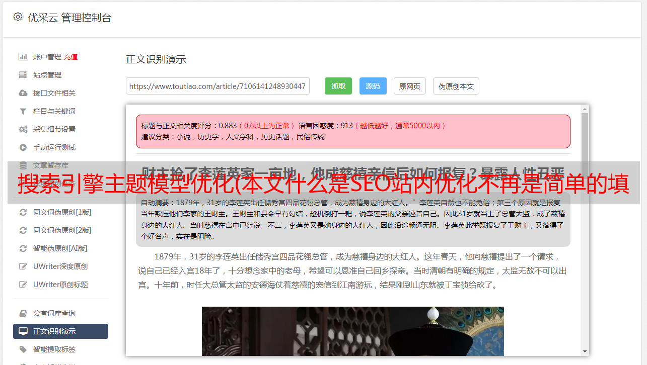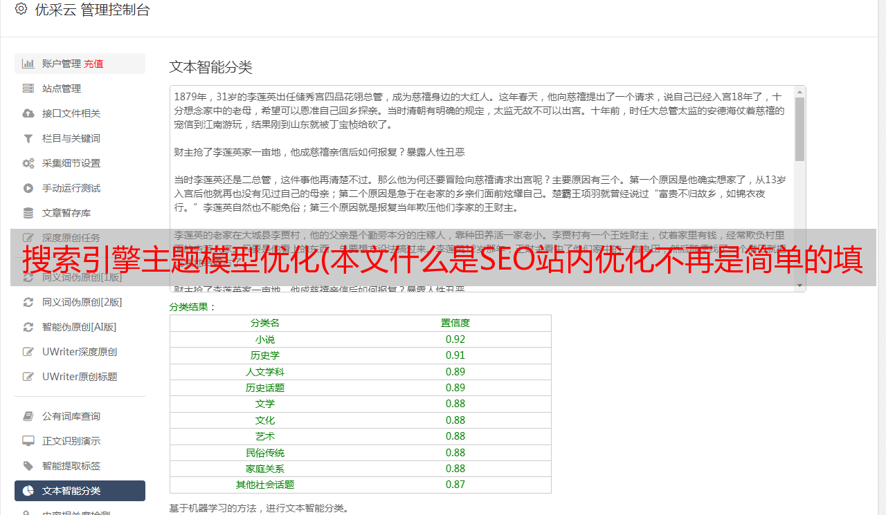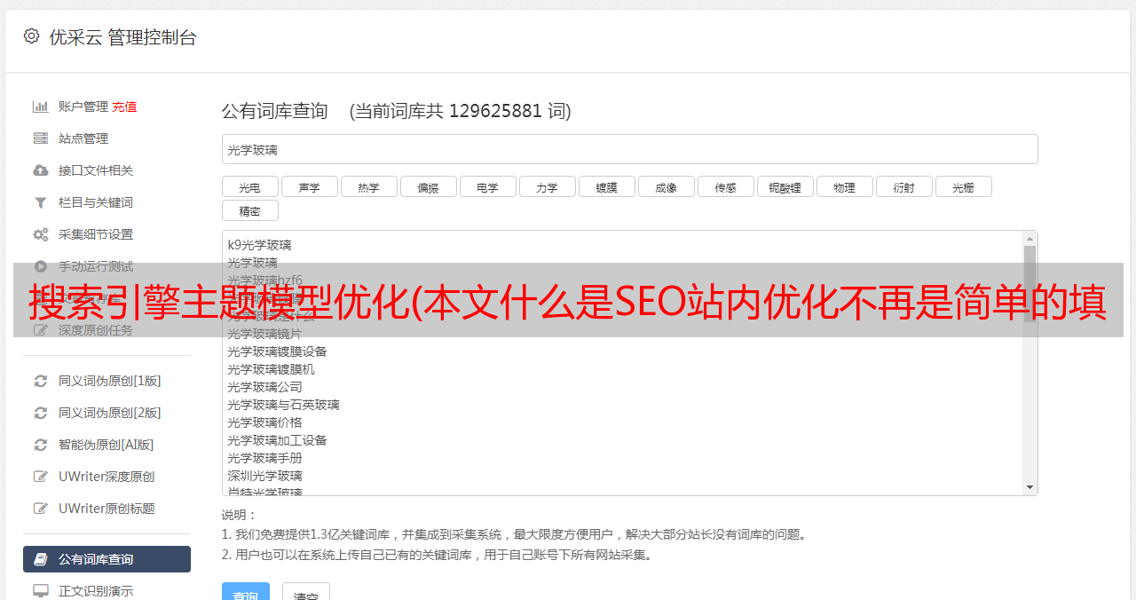 优采云 发布时间: 2022-01-09 22:06搜索引擎主题模型优化(本文什么是SEO站内优化不再是简单的填写内容)