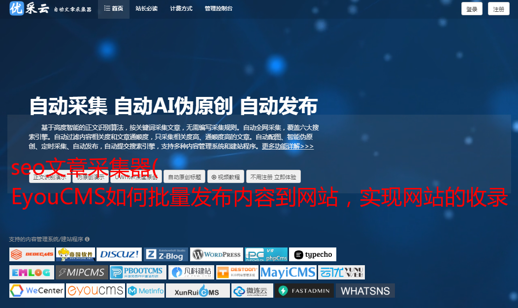 seo文章采集器( EyouCMS如何批量发布内容到网站,实现网站的收录增加 )