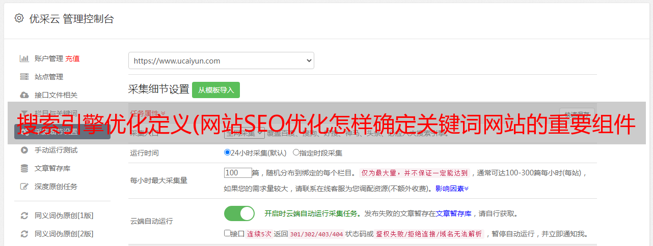 优采云 发布时间: 2022-01-10 08:10搜索引擎优化定义(网站SEO优化怎样确定关键词网站的重要组件是页面优化)