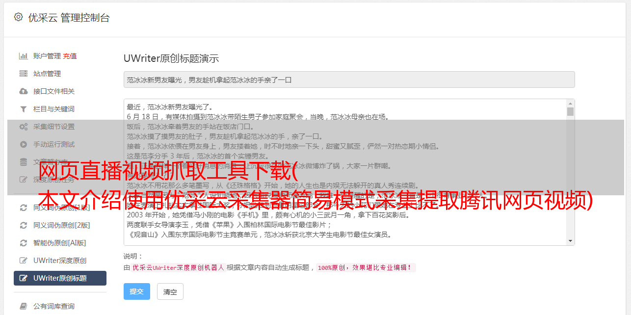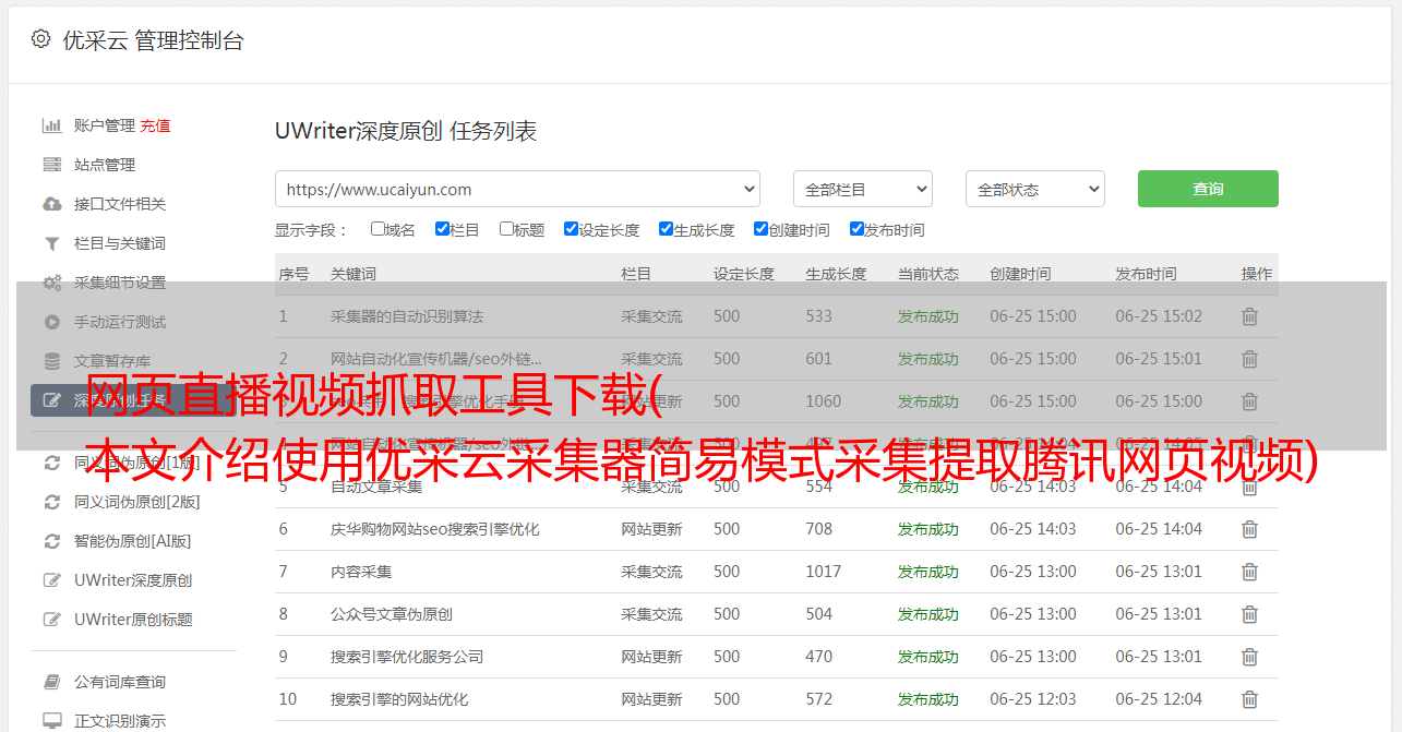 网页直播视频抓取工具下载( 本文介绍使用优采云采集器简易模式采集提取腾讯网页视频)