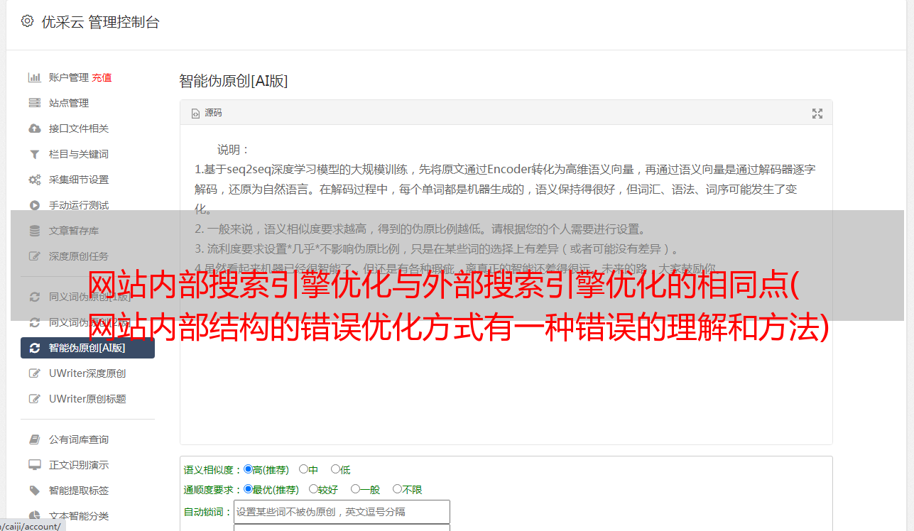 优采云 发布时间: 2022-01-10 11:12网站内部搜索引擎优化与外部搜索引擎优化的相同点(