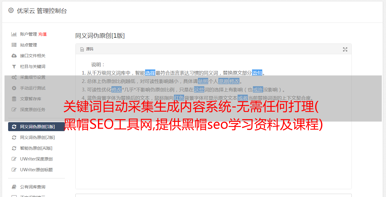 关键词自动采集生成内容系统-无需任何打理( 黑帽SEO工具网,提供黑帽seo学习资料及课程)