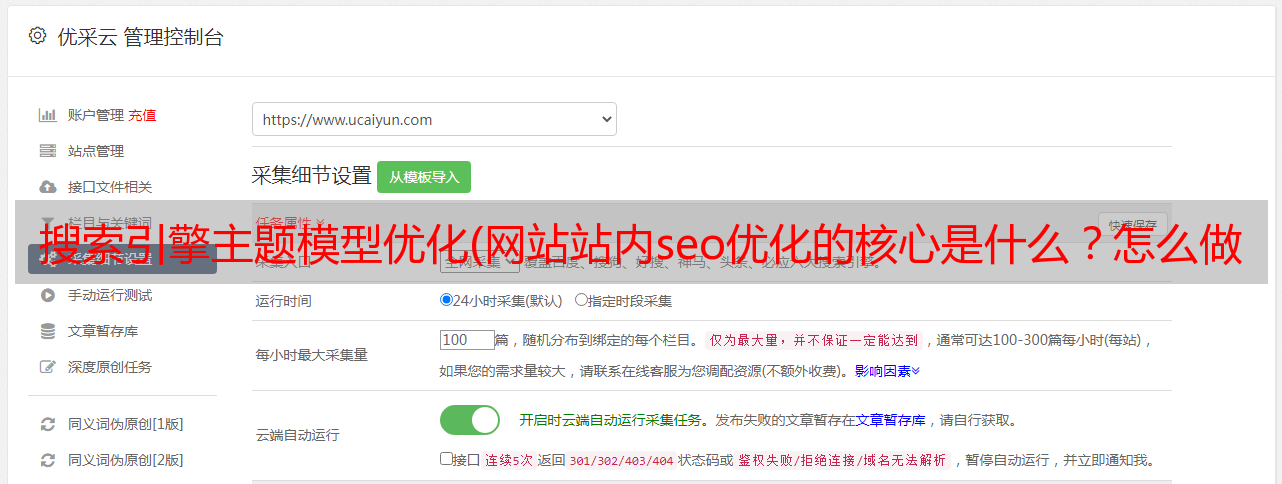 优采云 发布时间: 2022-01-10 13:15搜索引擎主题模型优化(网站站内seo优化的核心是什么?怎么做?)