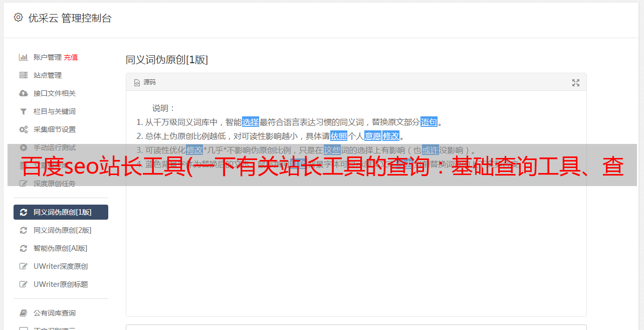 优采云 发布时间: 2022-01-10 14:14百度seo站长工具(一下有关站长工具的查询:基础查询工具、查询方法)