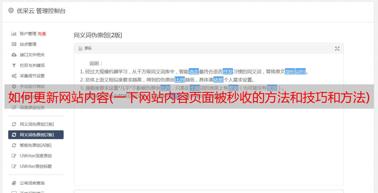 如何更新网站内容(一下网站内容页面被秒收的方法和技巧和方法)