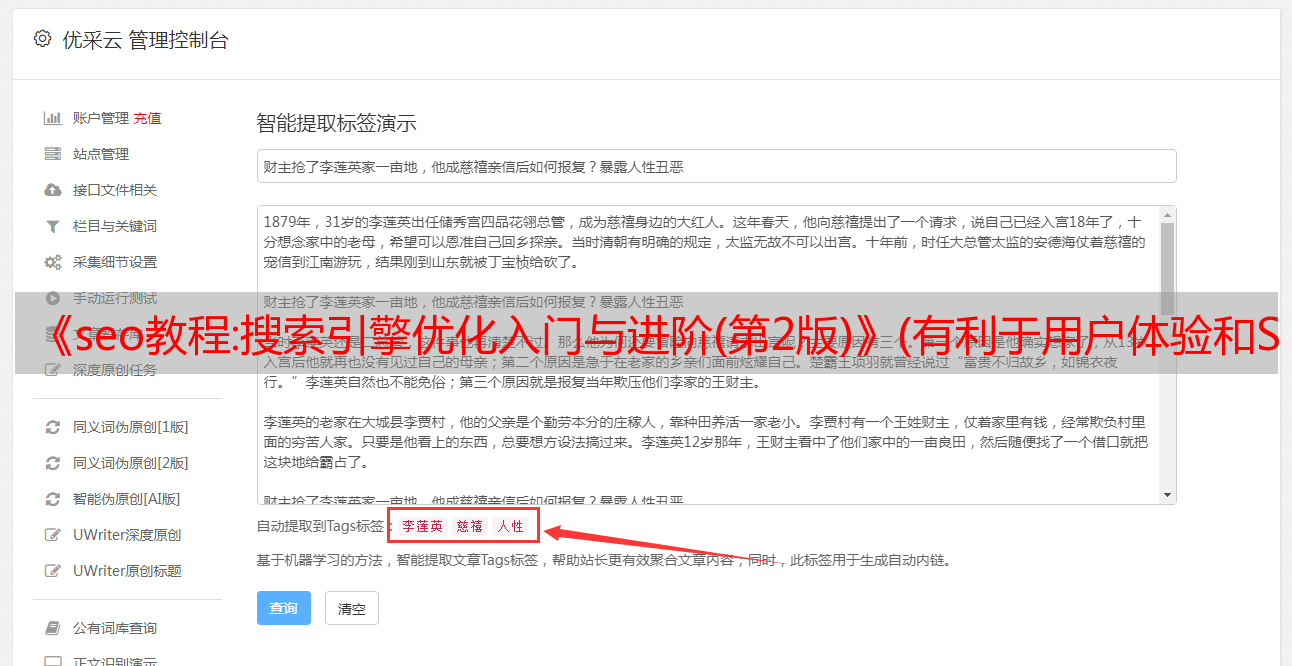 优采云 发布时间: 2022-01-11 06:08《seo教程:搜索引擎优化入门与进阶(第2版)》(有利于用户体验和SEO的写法有什么应用?SEO基础