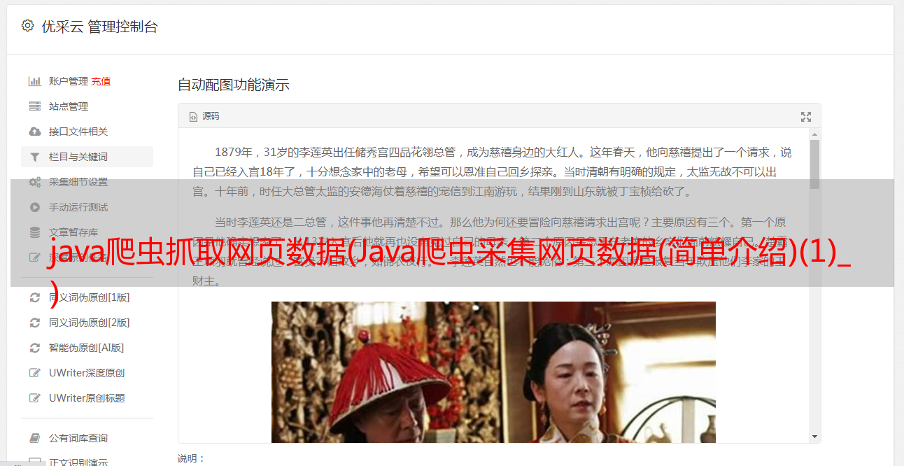 优采云 发布时间: 2022-01-12 00:08java爬虫抓取网页数据(Java爬虫采集网页数据(简单介绍)(1)_
