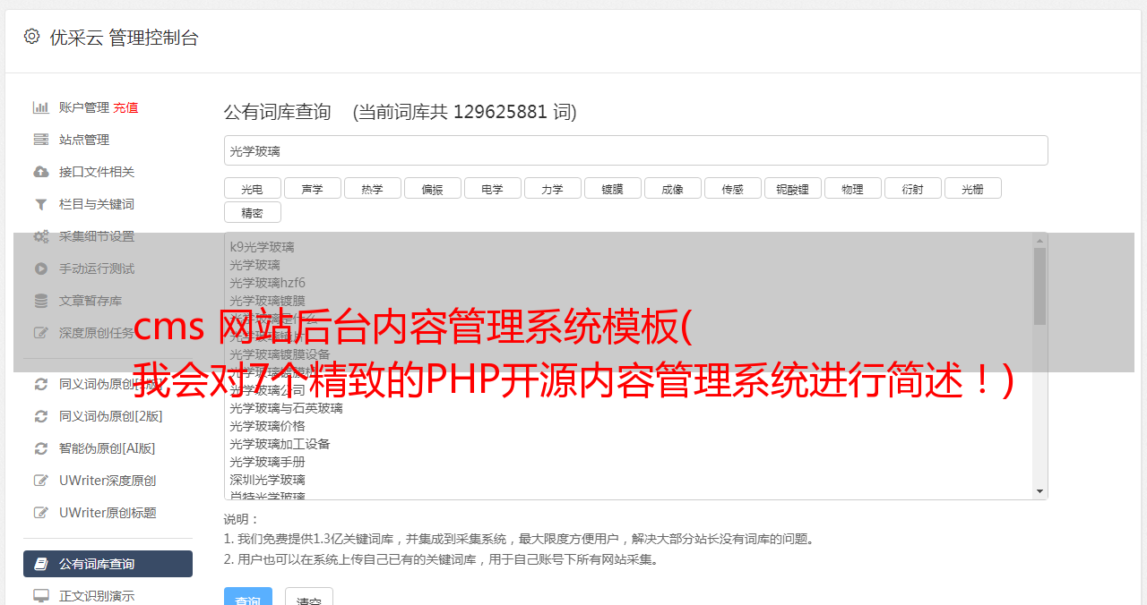 优采云 发布时间: 2022-01-12 02:06cms 网站后台内容管理系统模板(
