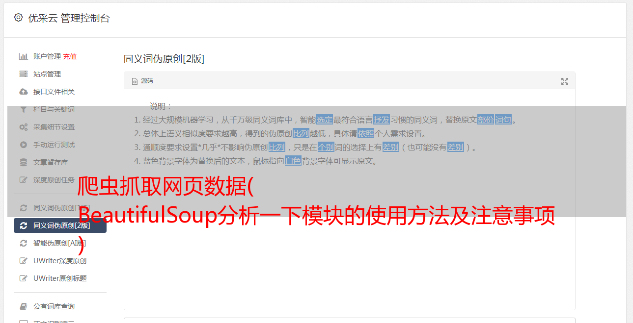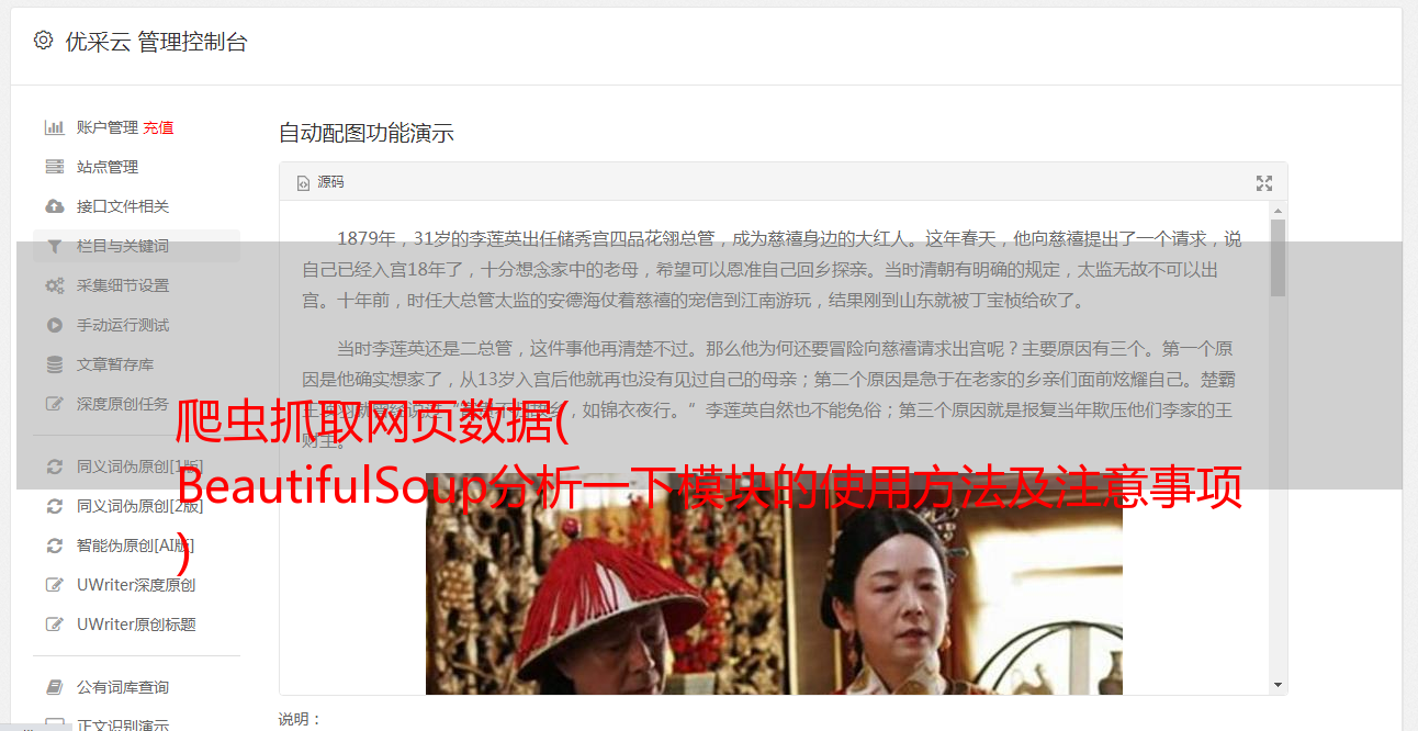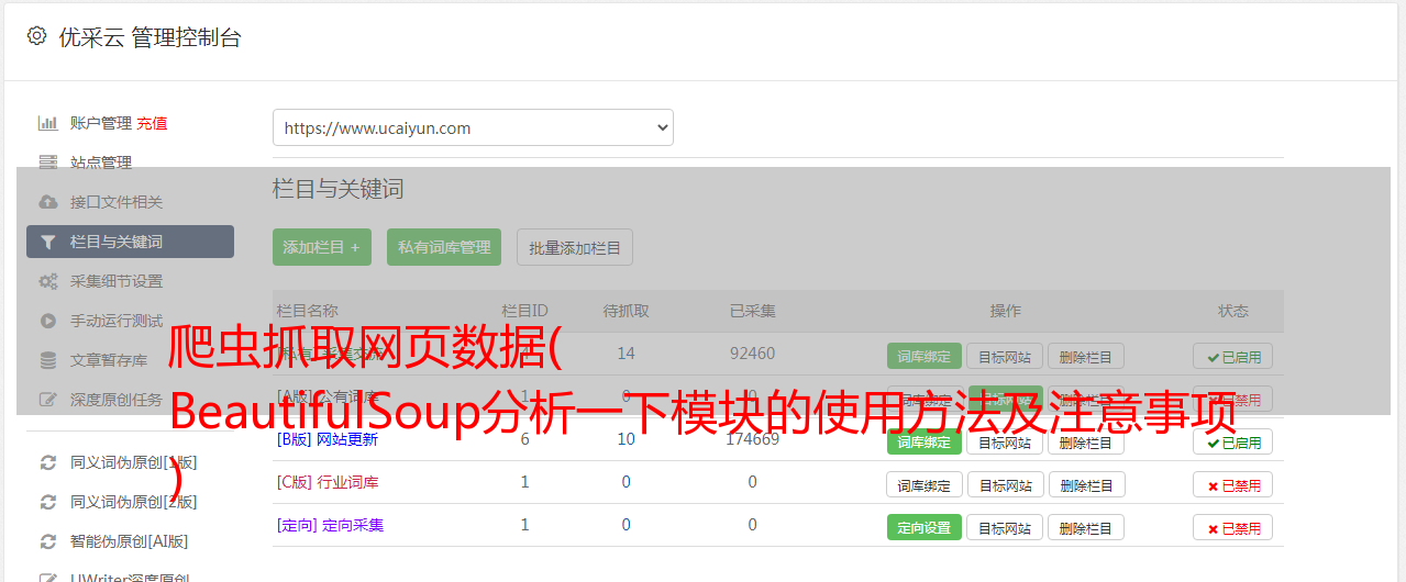 爬虫抓取网页数据( BeautifulSoup分析一下模块的使用方法及注意事项 )