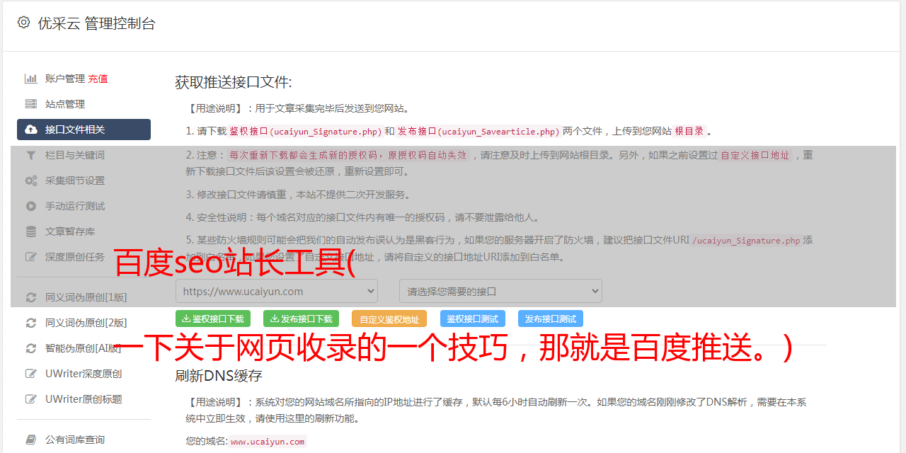 一下关于网页收录的一个技巧,那就是百度推送。)