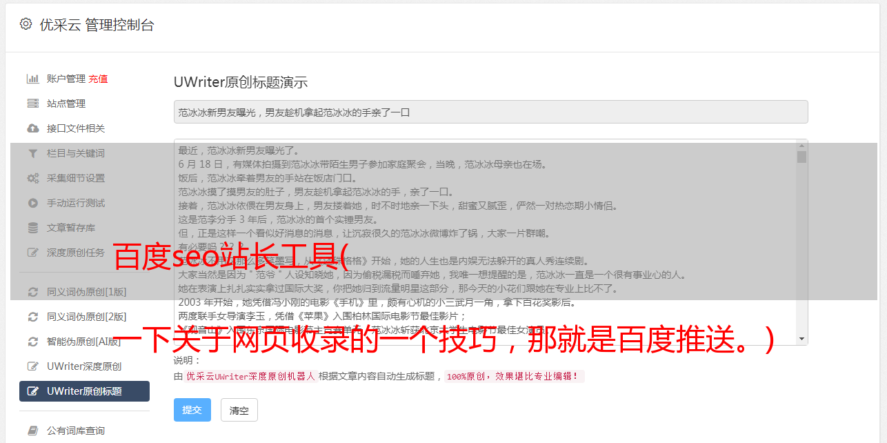 百度seo站长工具( 一下关于网页收录的一个技巧,那就是百度推送。)