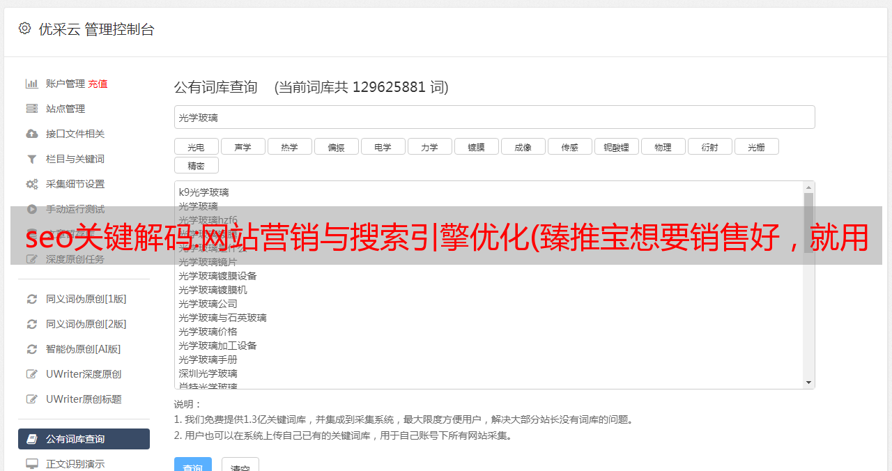 优采云 发布时间: 2022-01-13 21:02seo关键解码:网站营销与搜索引擎优化(臻推宝想要销售好,就用“臻推宝”!)