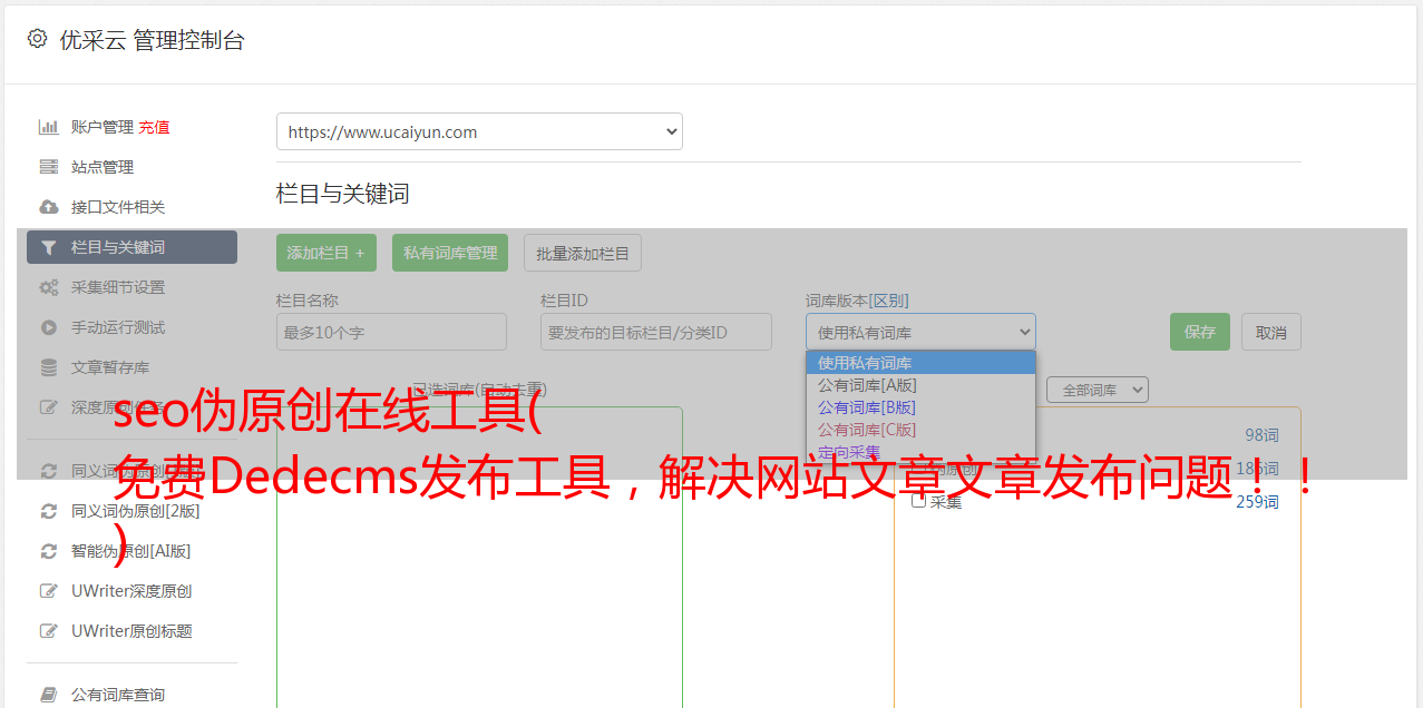 伪原创工具:无缝连接免费采集,直接采集到本地,支持本地批量伪原创+支持网站API接口