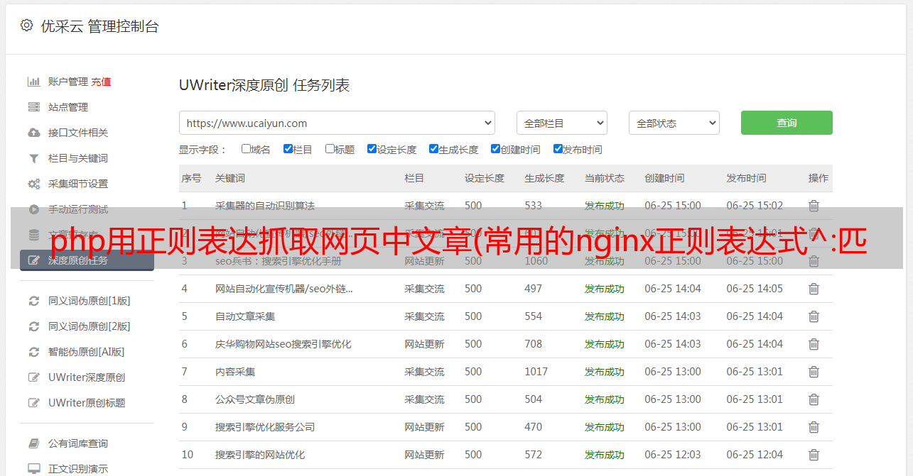 优采云 发布时间: 2022-01-15 03:16php用正则表达抓取网页中文章(常用的nginx正则表达式^:匹配输入字符串的路径地址地址)