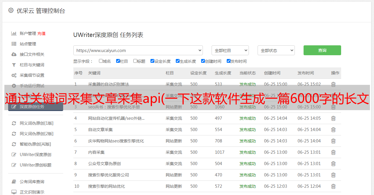 优采云 发布时间: 2022-01-15 07:09通过关键词采集文章采集api(一下这款软件生成一篇6000字的长文,软件)