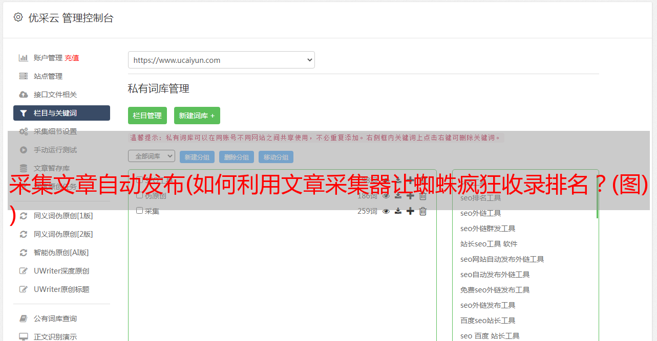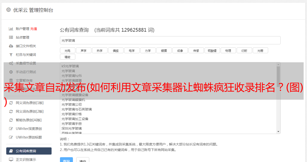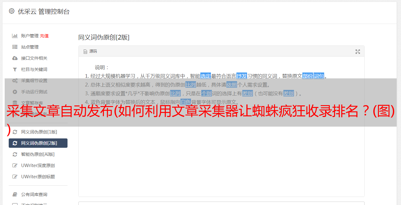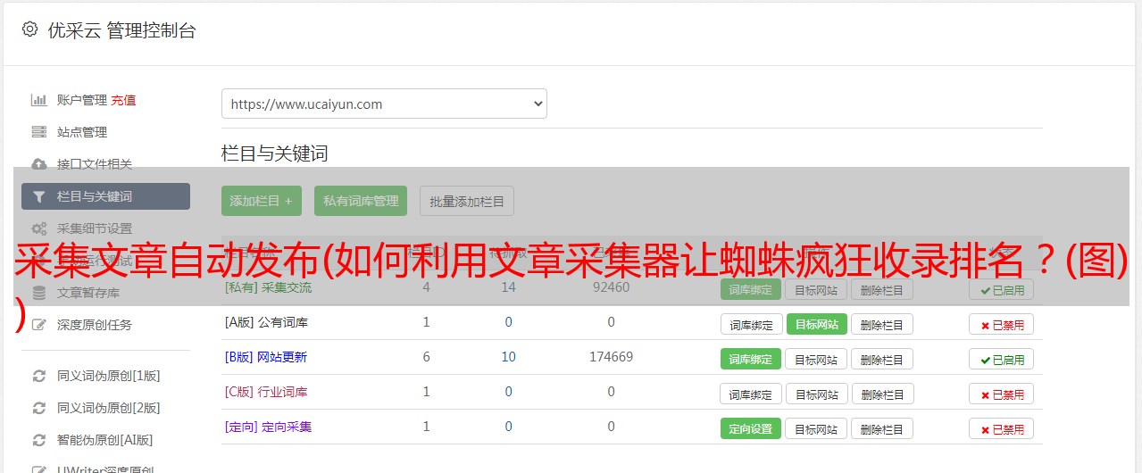 优采云 发布时间: 2022-01-15 14:05采集文章自动发布(如何利用文章采集器让蜘蛛疯狂收录排名?(图)