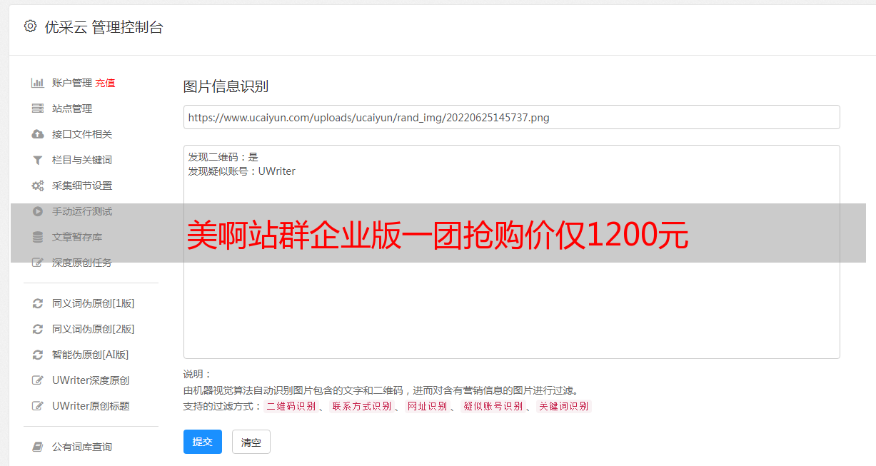 优采云 发布时间: 2021-04-25 21:10美啊站群企业版一团抢购价仅1200元