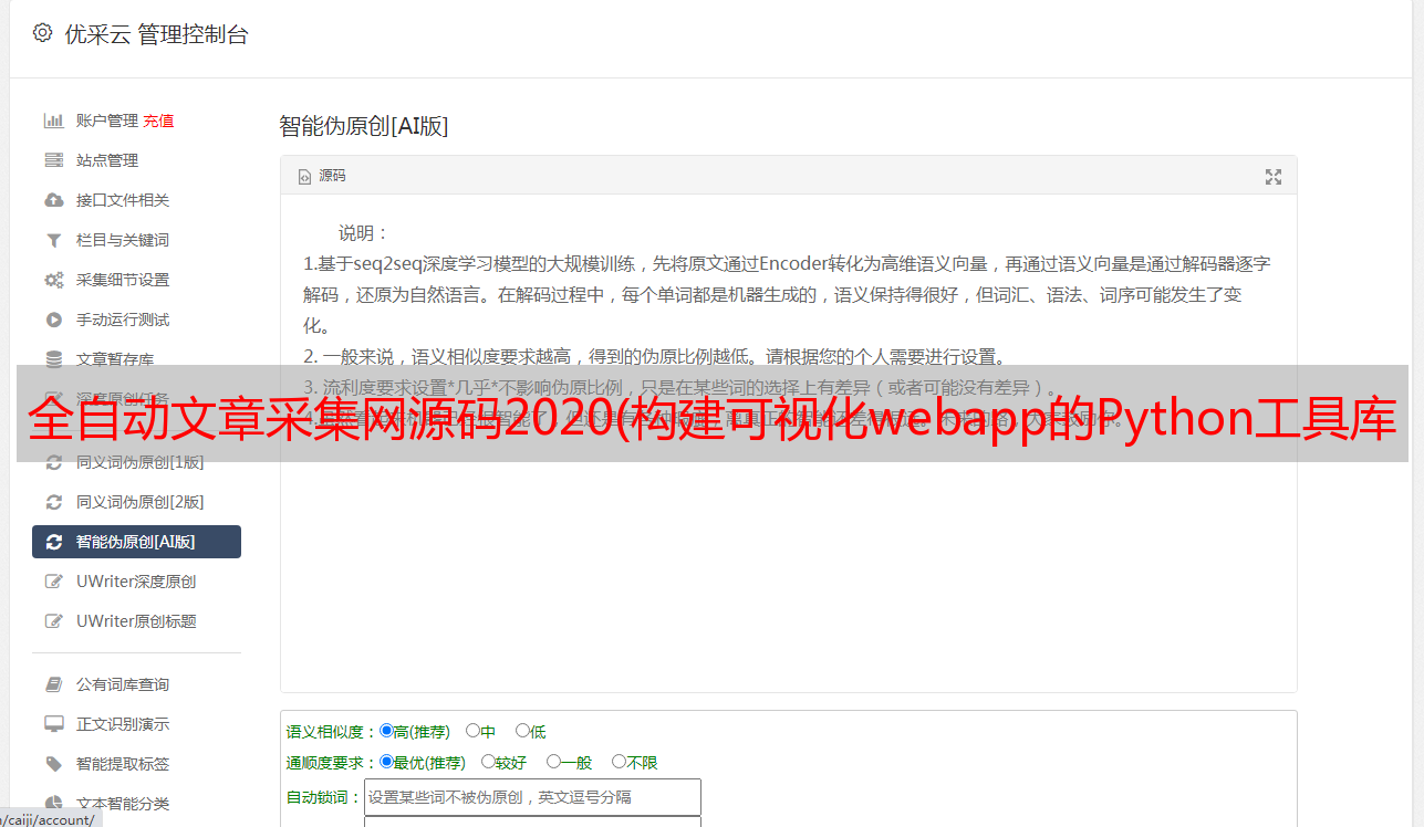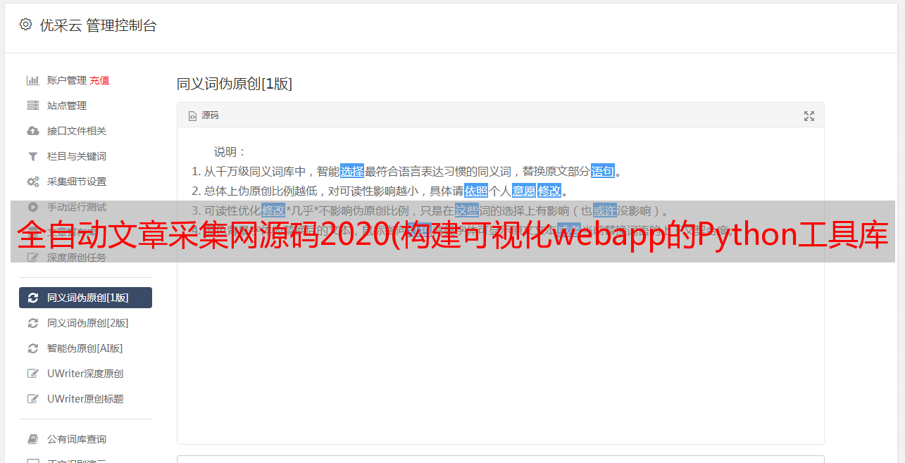 优采云 发布时间: 2022-01-15 19:21全自动文章采集网源码2020(构建可视化webapp的Python工具库pywebio试用下试用报告)