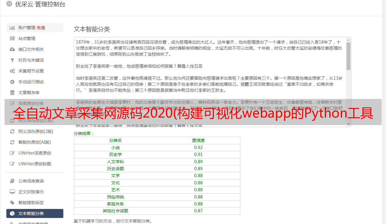 全自动文章采集网源码2020(构建可视化webapp的Python工具库pywebio试用下试用报告)