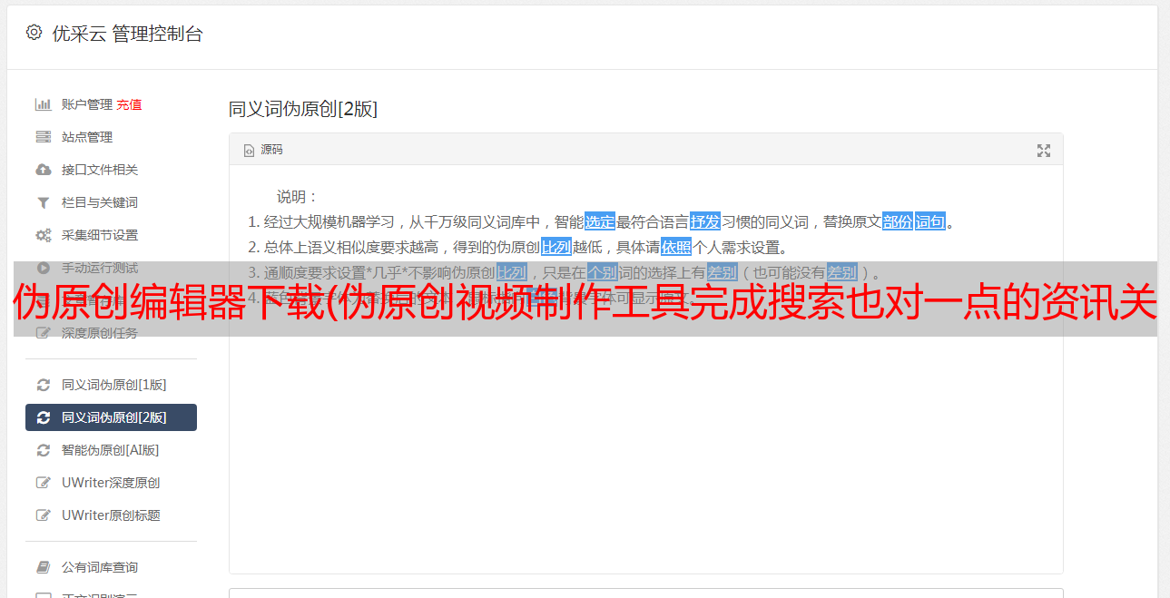 伪原创编辑器下载(伪原创视频制作工具完成搜索也对一点的资讯关键词 )