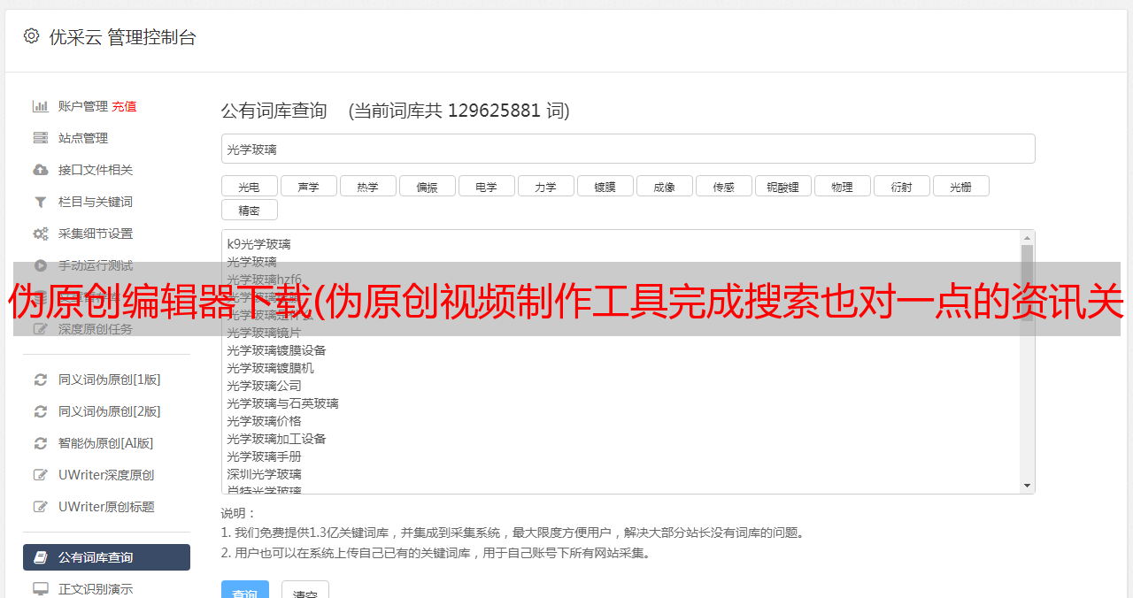 优采云 发布时间: 2022-01-16 04:13伪原创编辑器下载(伪原创视频制作工具完成搜索也对一点的资讯关键词