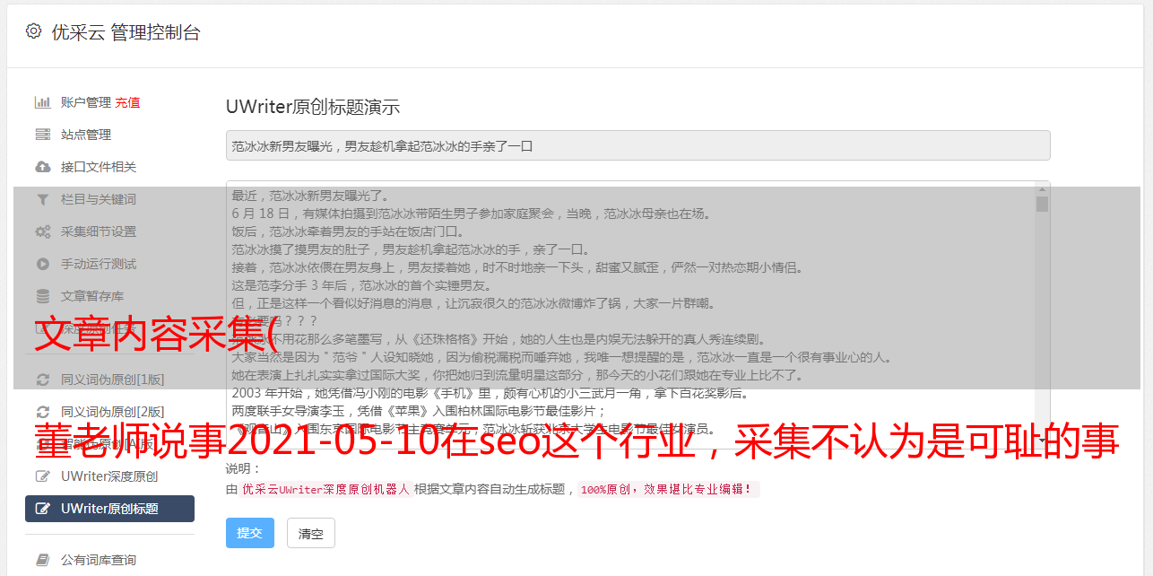 文章内容采集( 董老师说事2021-05-10在seo这个行业,采集不认为是可耻的事情)