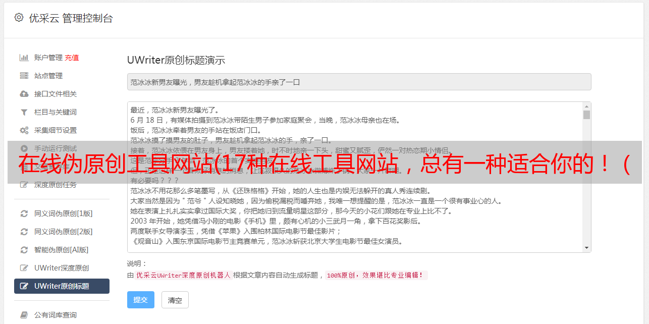 优采云 发布时间: 2022-01-16 15:12在线伪原创工具网站(17种在线工具网站,总有一种适合你的!(上))