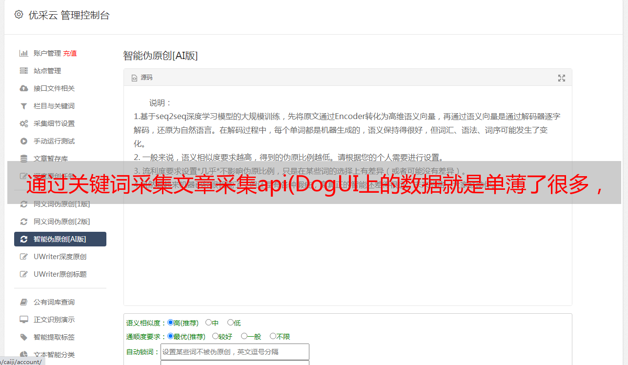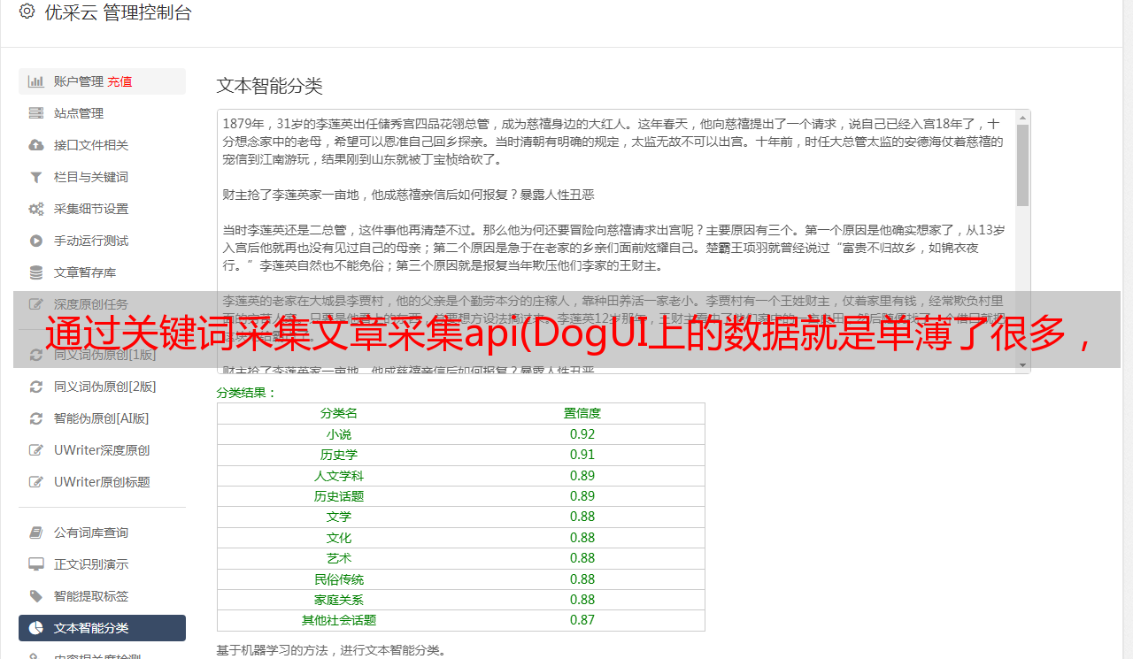 优采云 发布时间: 2022-01-16 22:22通过关键词采集文章采集api(DogUI上的数据就是单薄了很多,你知道吗?)