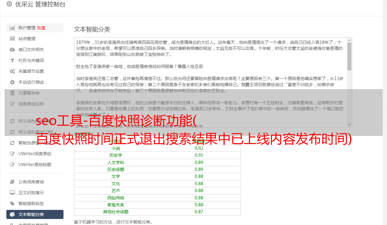 优采云 发布时间: 2022-01-17 04:08seo工具-百度快照诊断功能(
