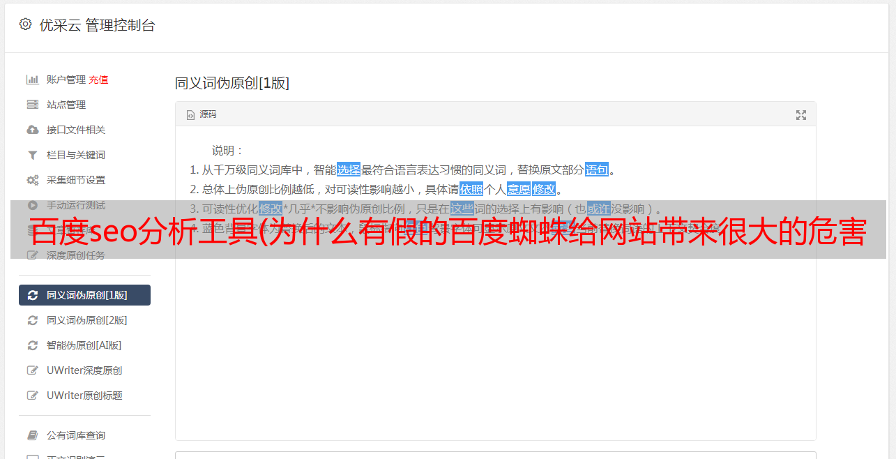 优采云 发布时间: 2022-01-17 04:15百度seo分析工具(为什么有假的百度蜘蛛给网站带来很大的危害?)