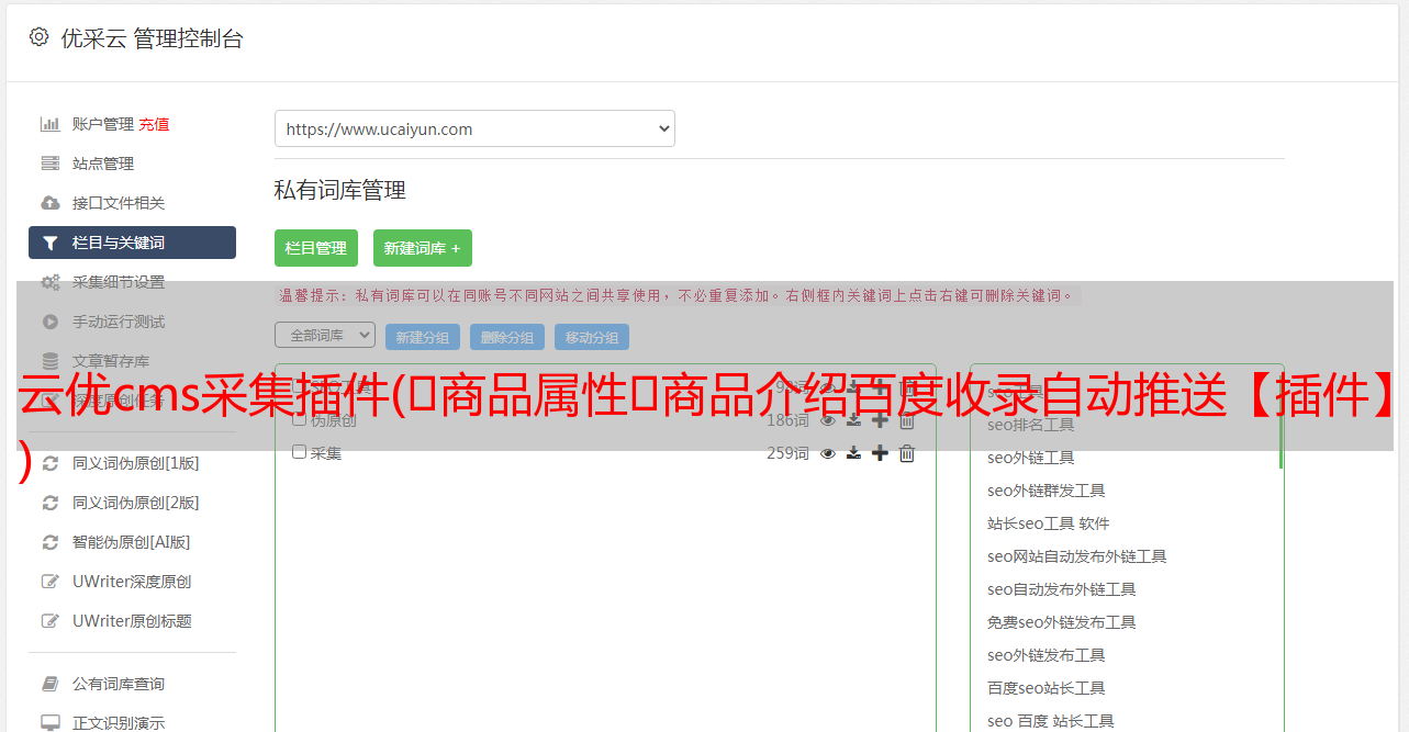 云优cms采集插件(商品属性商品介绍百度收录自动推送【插件】 )