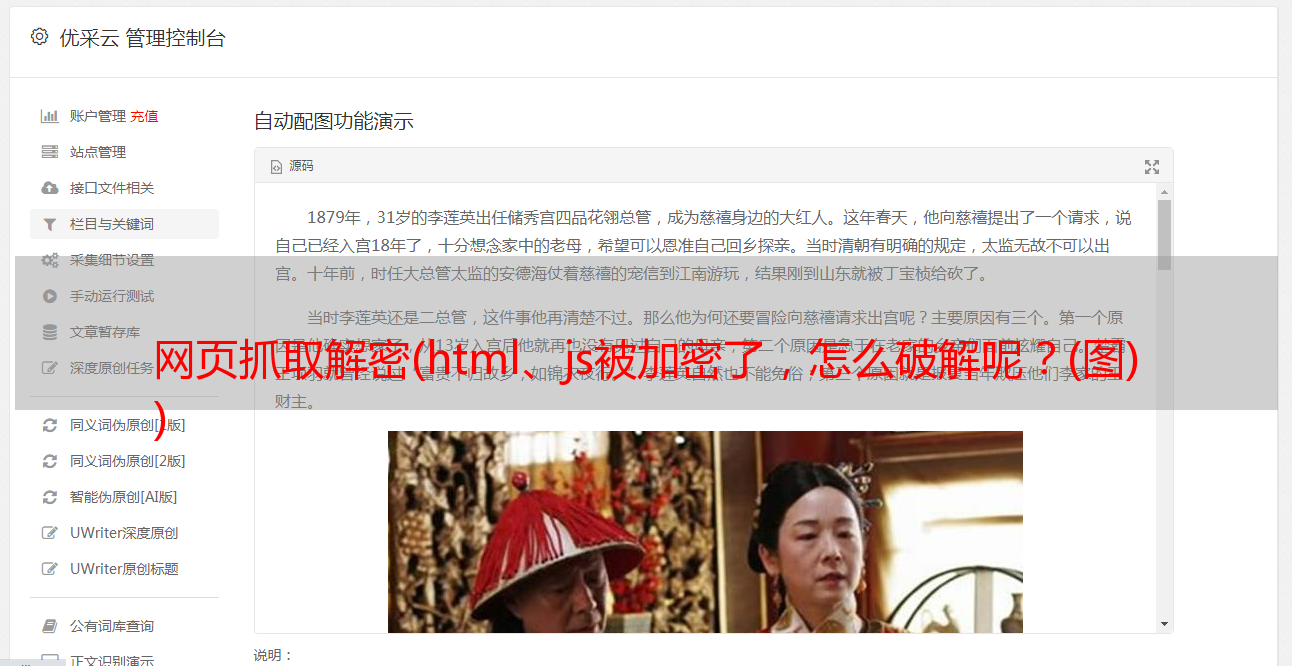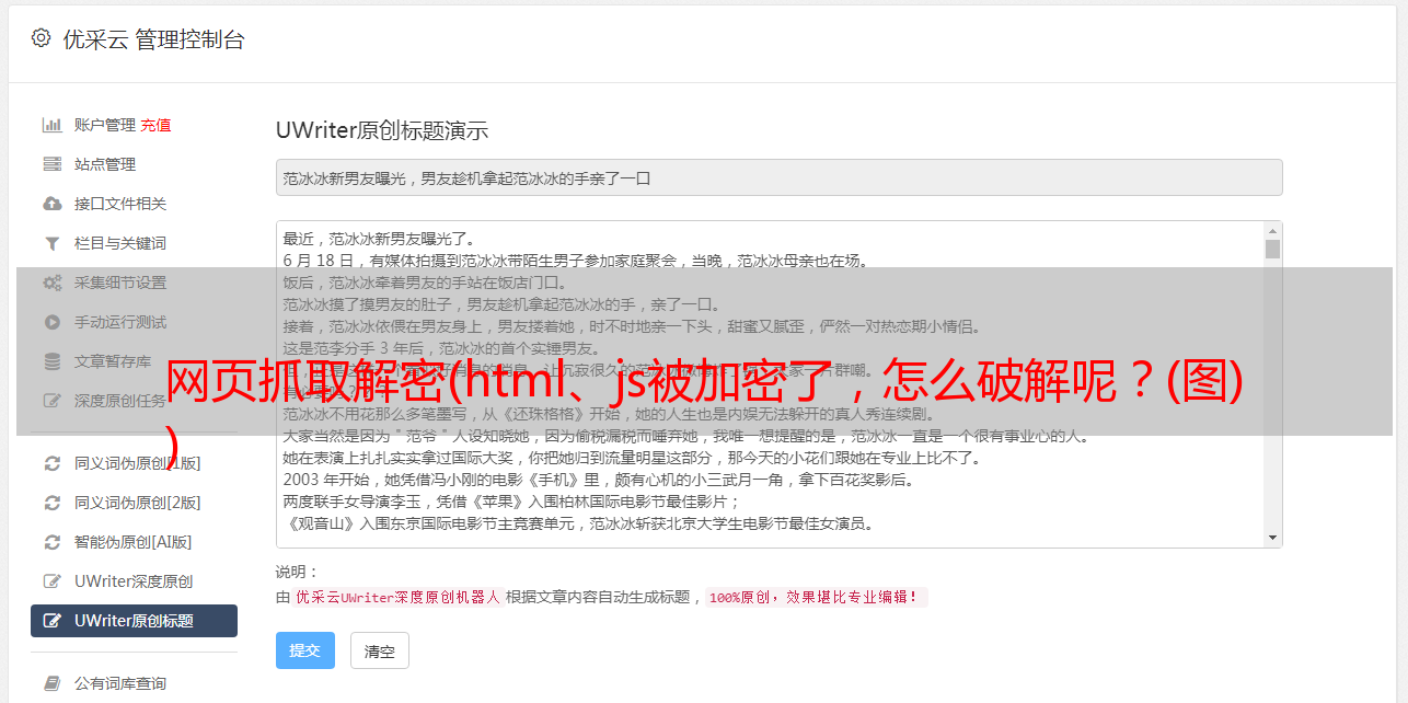 优采云 发布时间: 2022-01-18 09:02网页抓取解密(html、js被加密了,怎么破解呢?(图)
