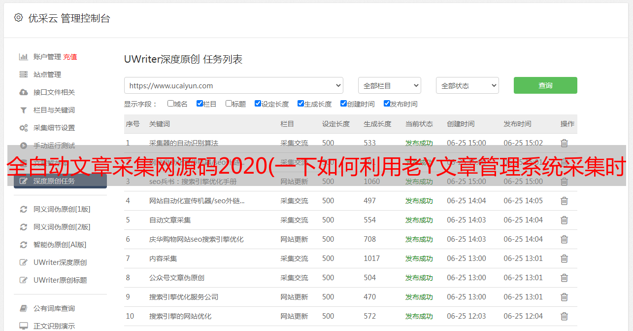 优采云 发布时间: 2022-01-18 09:31全自动文章采集网源码2020(一下如何利用老Y文章管理系统采集时自动完成伪原创