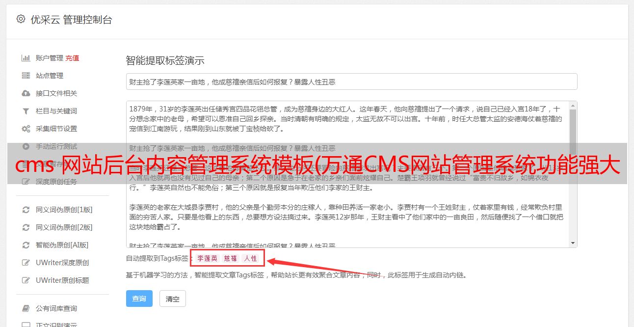优采云 发布时间: 2022-01-18 20:10cms 网站后台内容管理系统模板(万通CMS网站管理系统功能强大、删除和修改SEO优化软件特色
