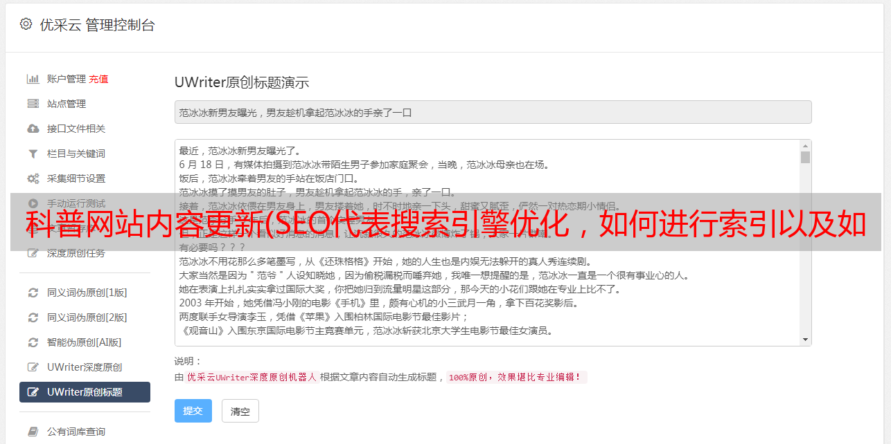 优采云 发布时间: 2022-01-18 22:08科普网站内容更新(SEO代表搜索引擎优化,如何进行索引以及如何确定其为搜索优化)